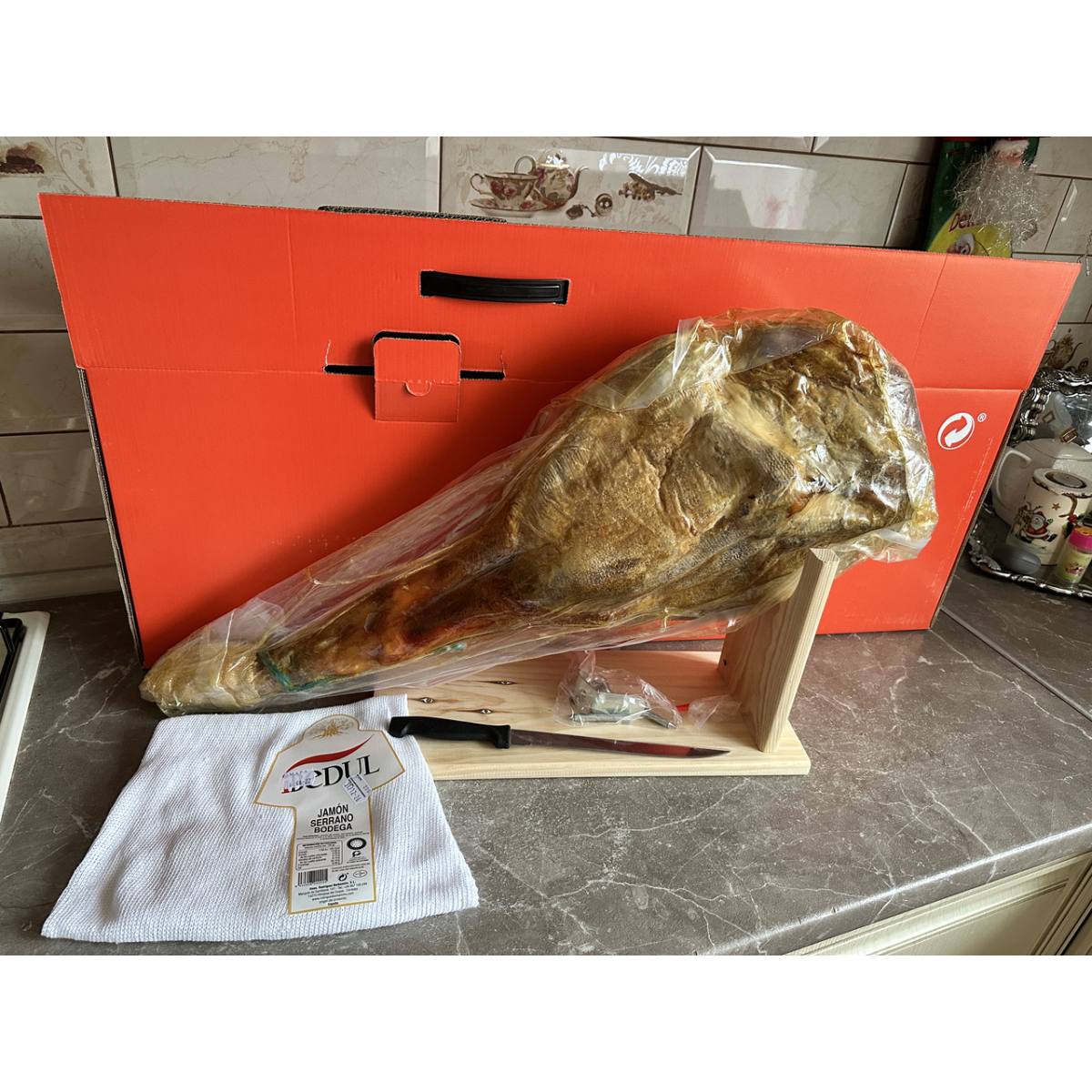 Хамон нога IBEDUL з підставкою та ножем в подарунковій упаковці, 6кг